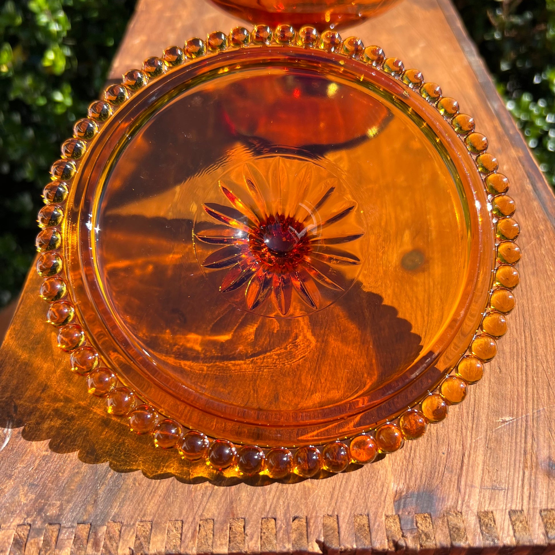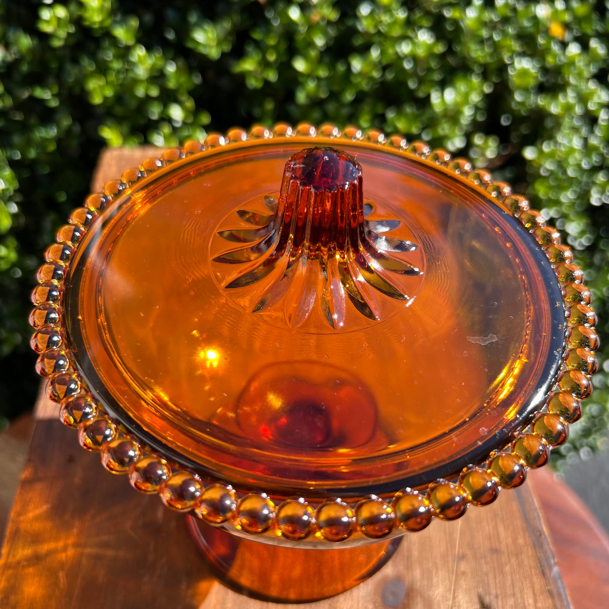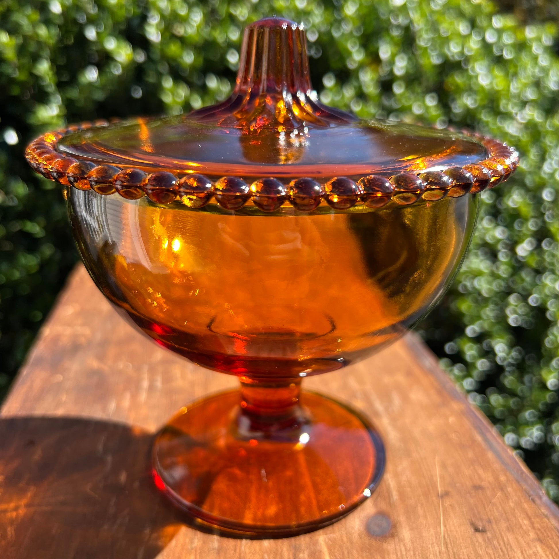 Amber Hued Depression Glass Candy Dish Beaded Edge by Indiana Glass Co.