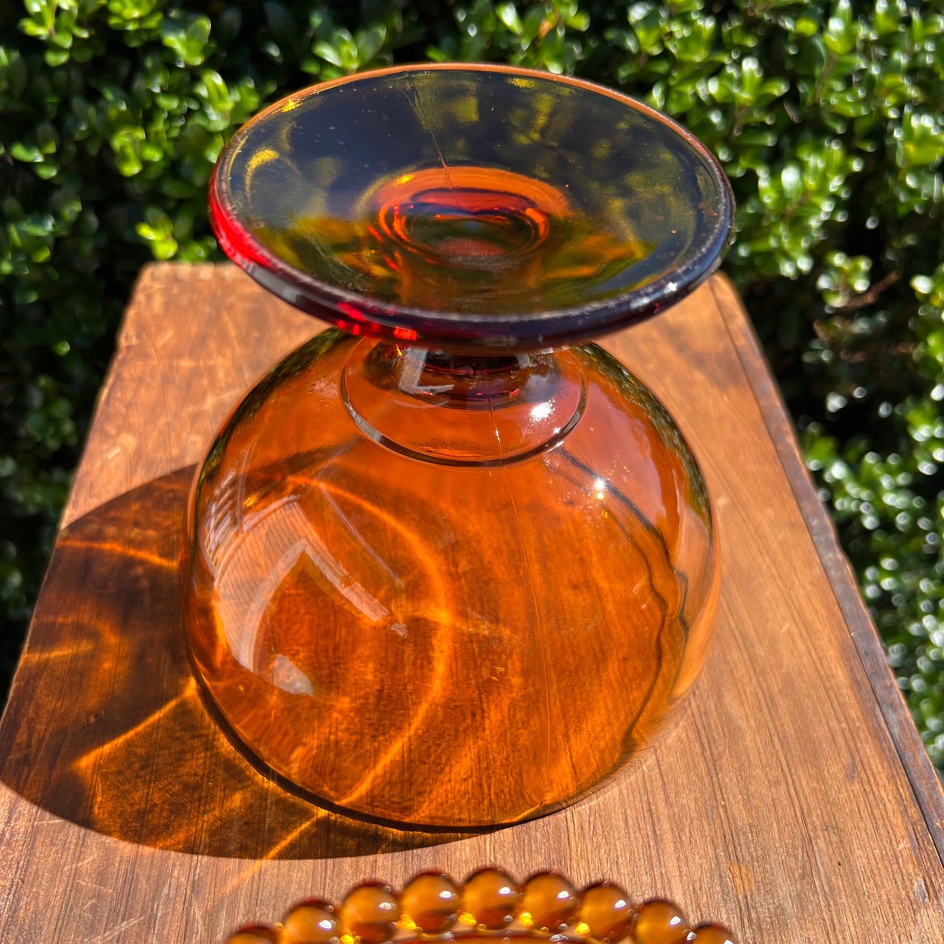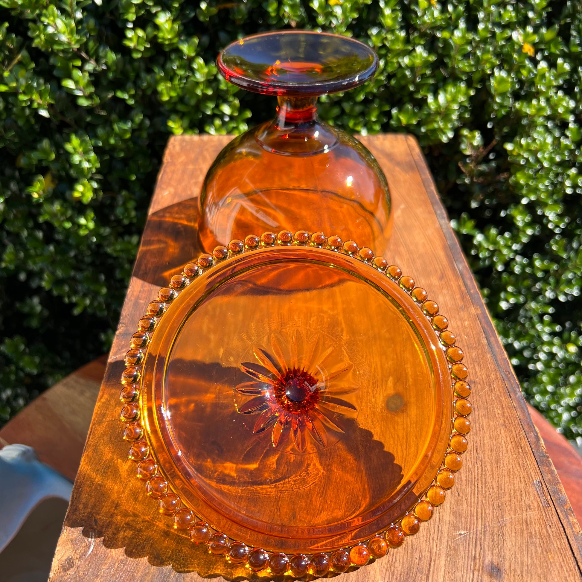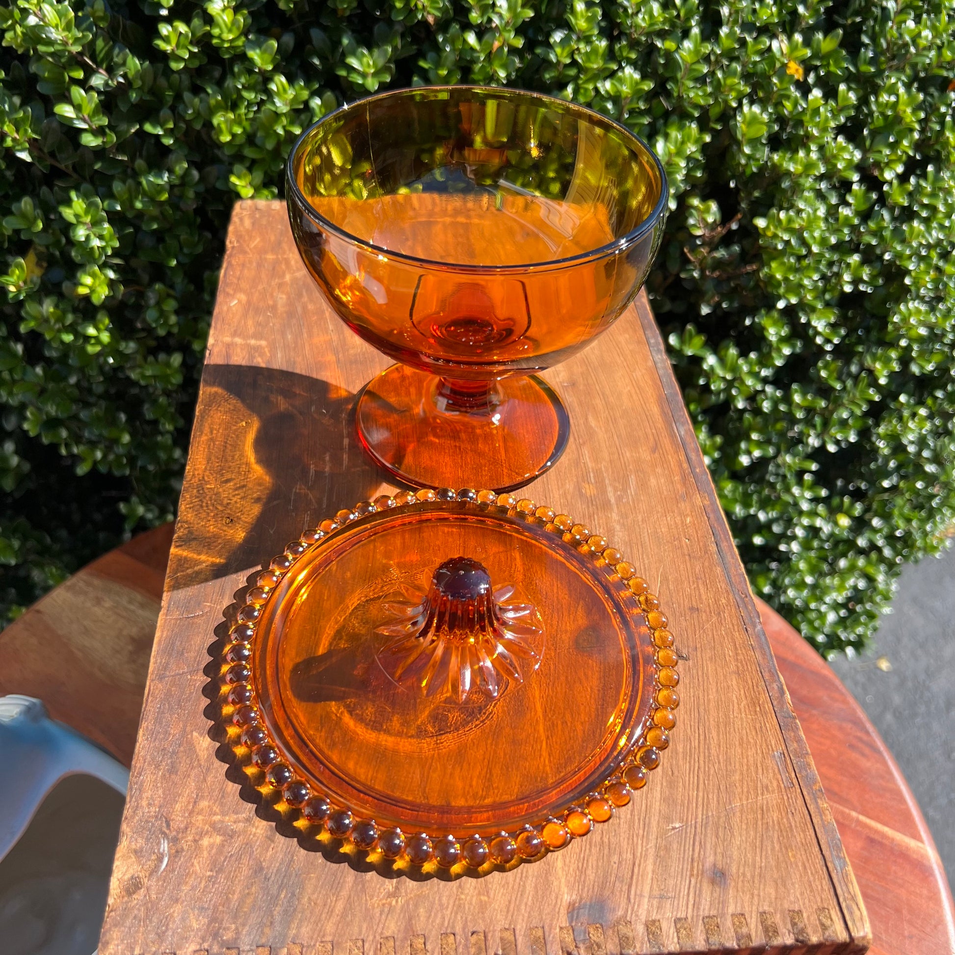 Amber Hued Depression Glass Candy Dish Beaded Edge by Indiana Glass Co.