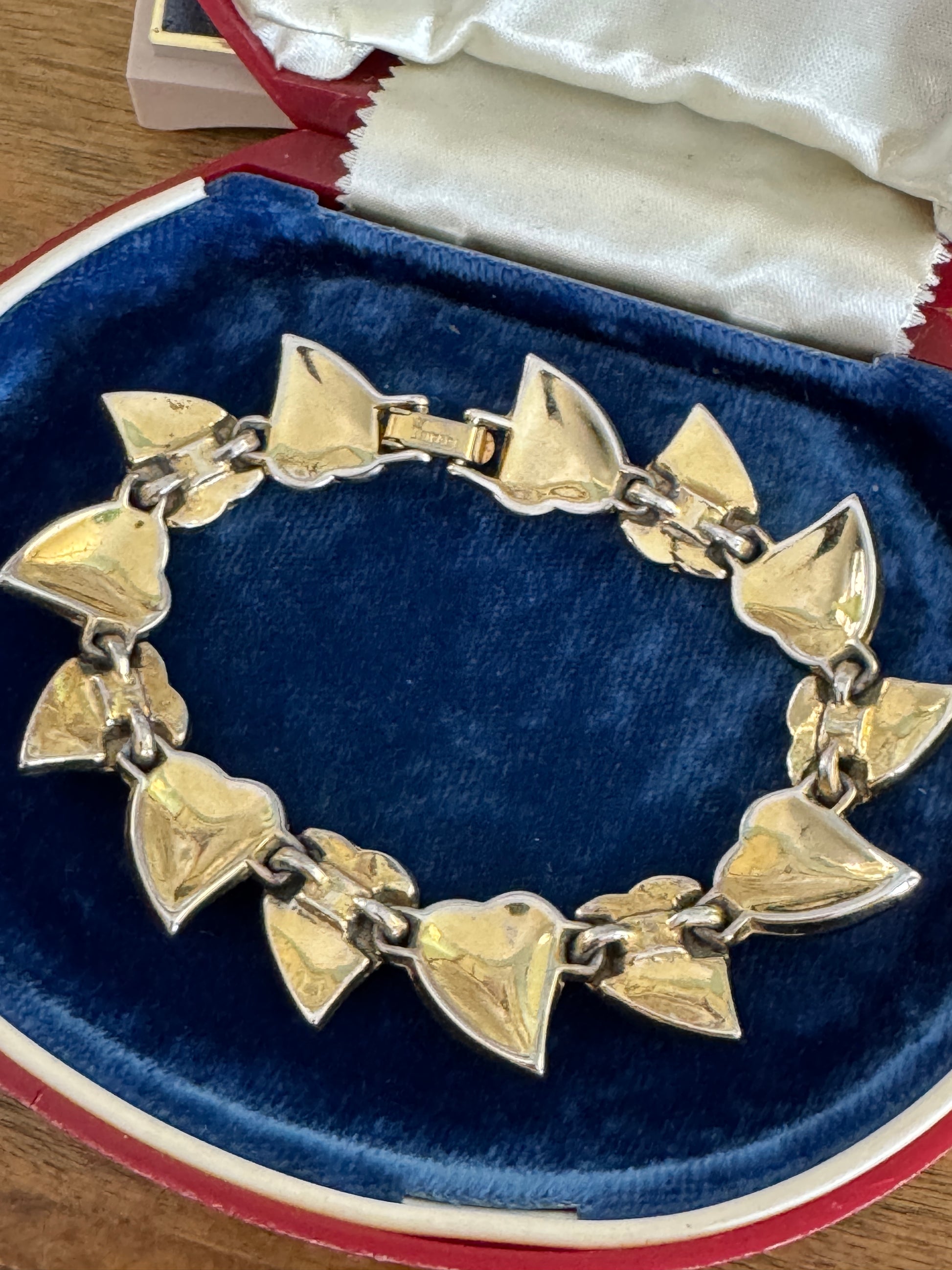Vintage Trifari Gold Tone Metal Heart Shaped Bracelet