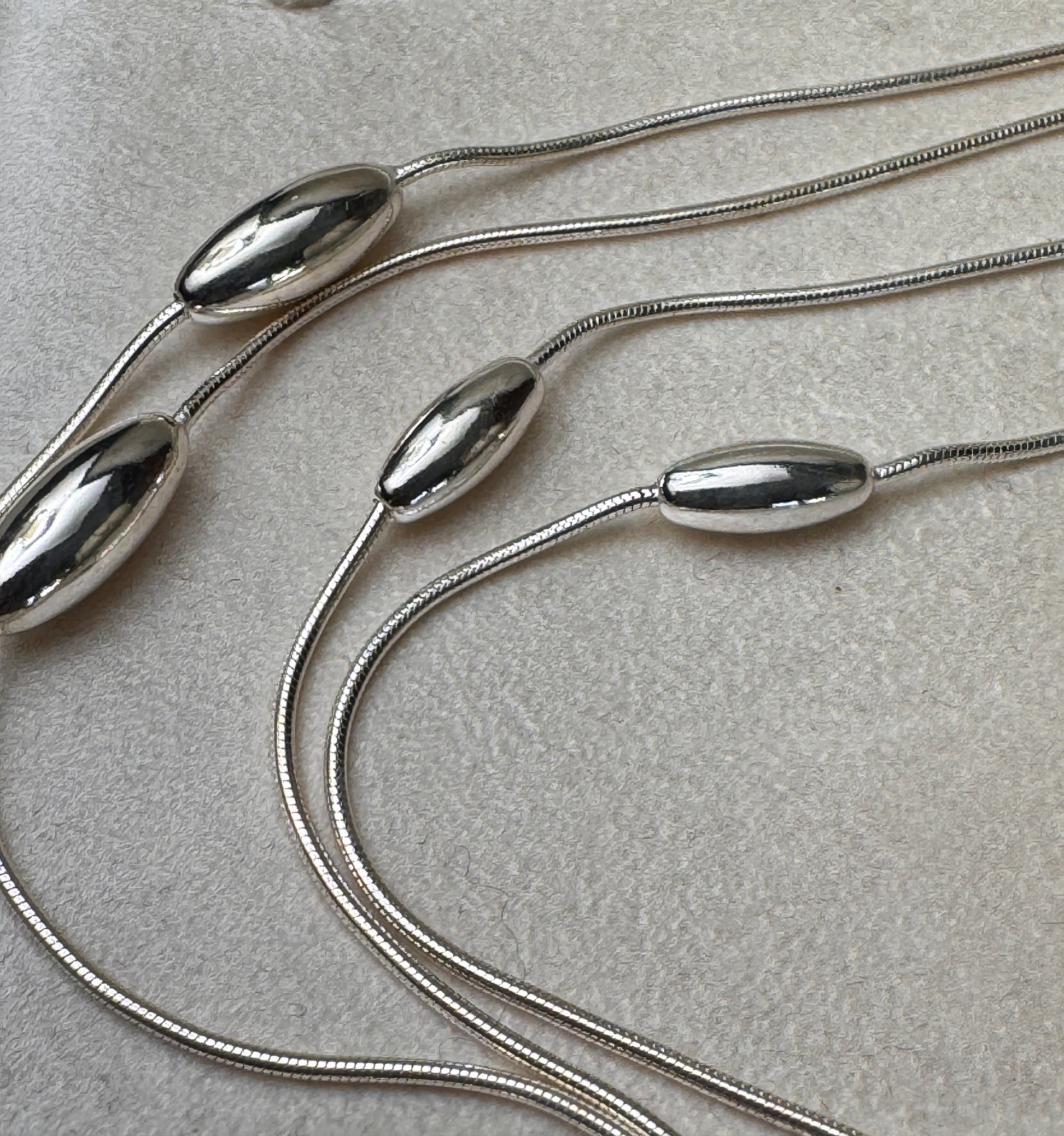 Elevate your everyday elegance with this stunning Dyadema Italian Sterling Silver Necklace. Crafted from authentic 925 sterling silver, this approx. 33-inch piece features a gracefully designed chain adorned with eleven rice-shaped beads in varying sizes, creating a sophisticated alternating pattern. The smallest bead measures approx. 4.04 mm x 8.97 mm with the largest approx. 6.09 mm wide x 15.55 mm long. The substantial 8.97 mm chain thickness ensures durability and lasting wear, while the secure lobster claw clasp keeps your necklace safely in place. Authenticity is guaranteed with the Dyadema maker's mark, Italy and 925 hallmark stamped on the cartouche and 925 on the lobster claw clasp. Perfect for layering or wearing solo, this Italian-made treasure brings timeless refinement to any wardrobe.