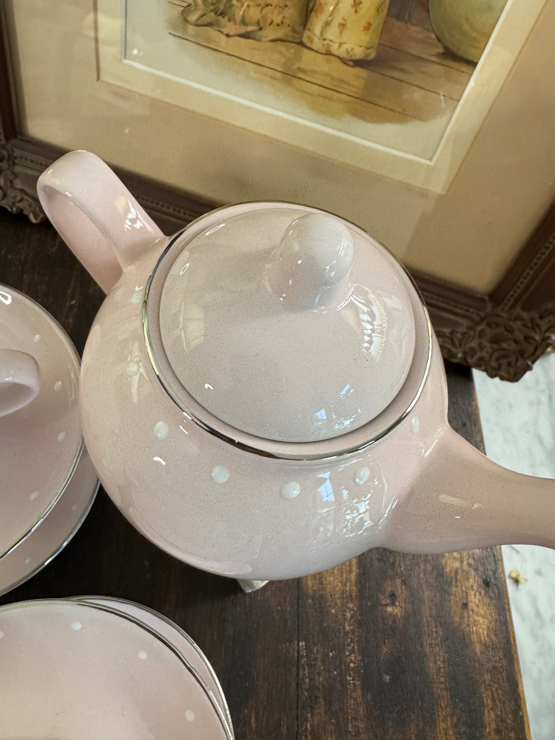 Pottery Barn Kids Pink Polka Dot Porcelain Tea Set in Orig Box