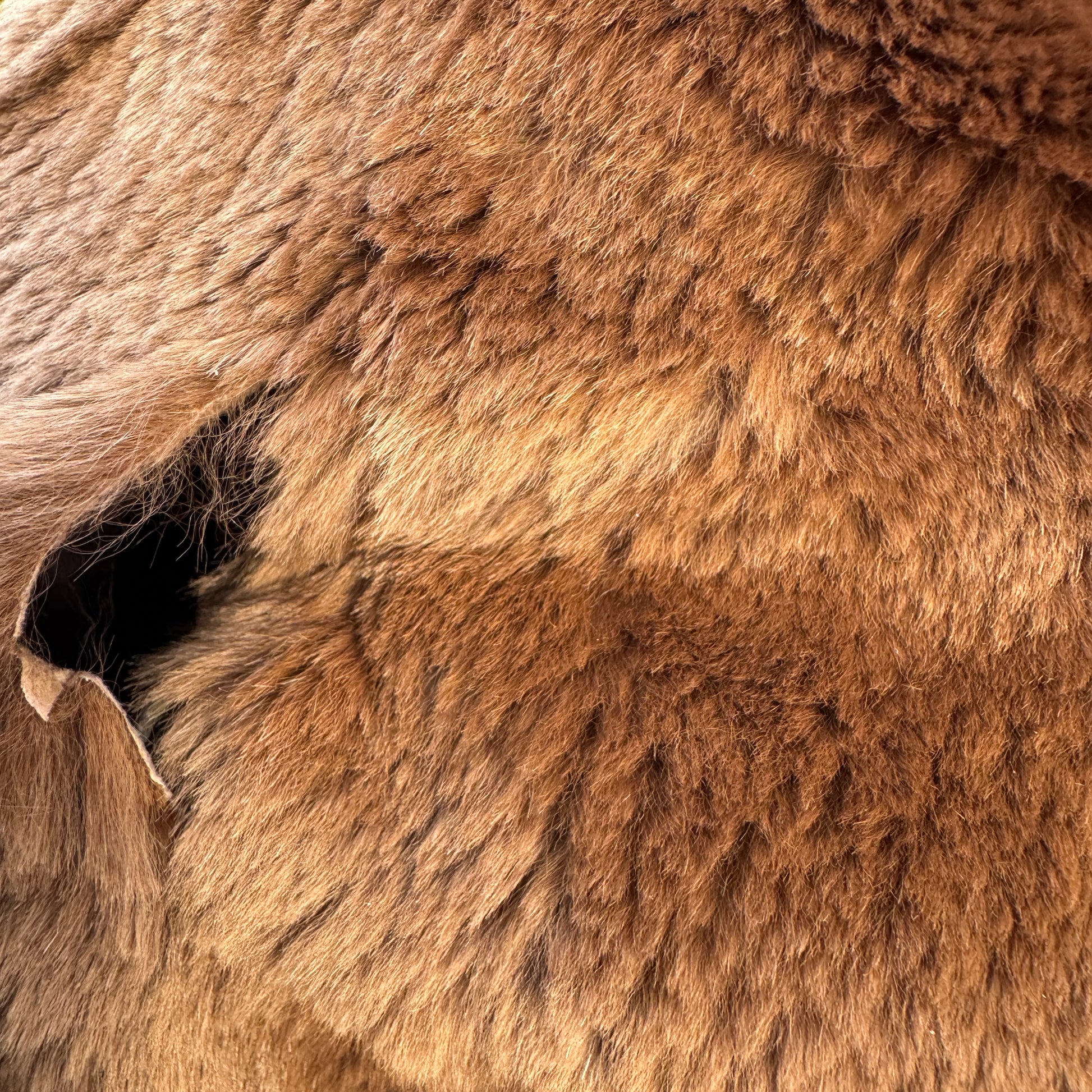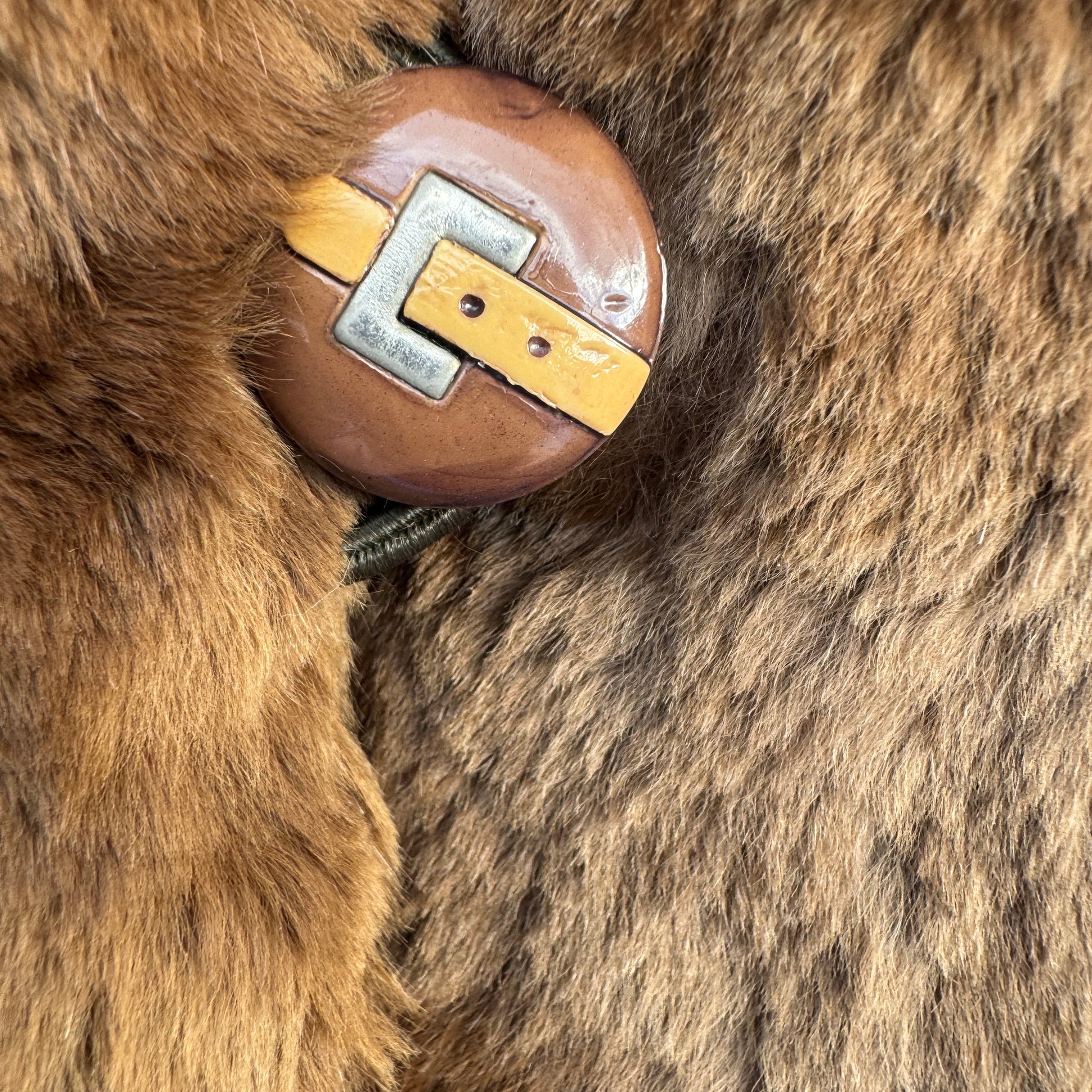 This elegant vintage fur capelet showcases timeless style with its generous 46-inch width and refined silhouette. Measuring 11 inches in length with a substantial 4.5-inch collar, it drapes beautifully for a touch of classic glamour. Secured with two buttons each decorated with a cute buckle design and satin lining inside the cape , this fur cape has a condition issue with a tear in the pelt in the front.