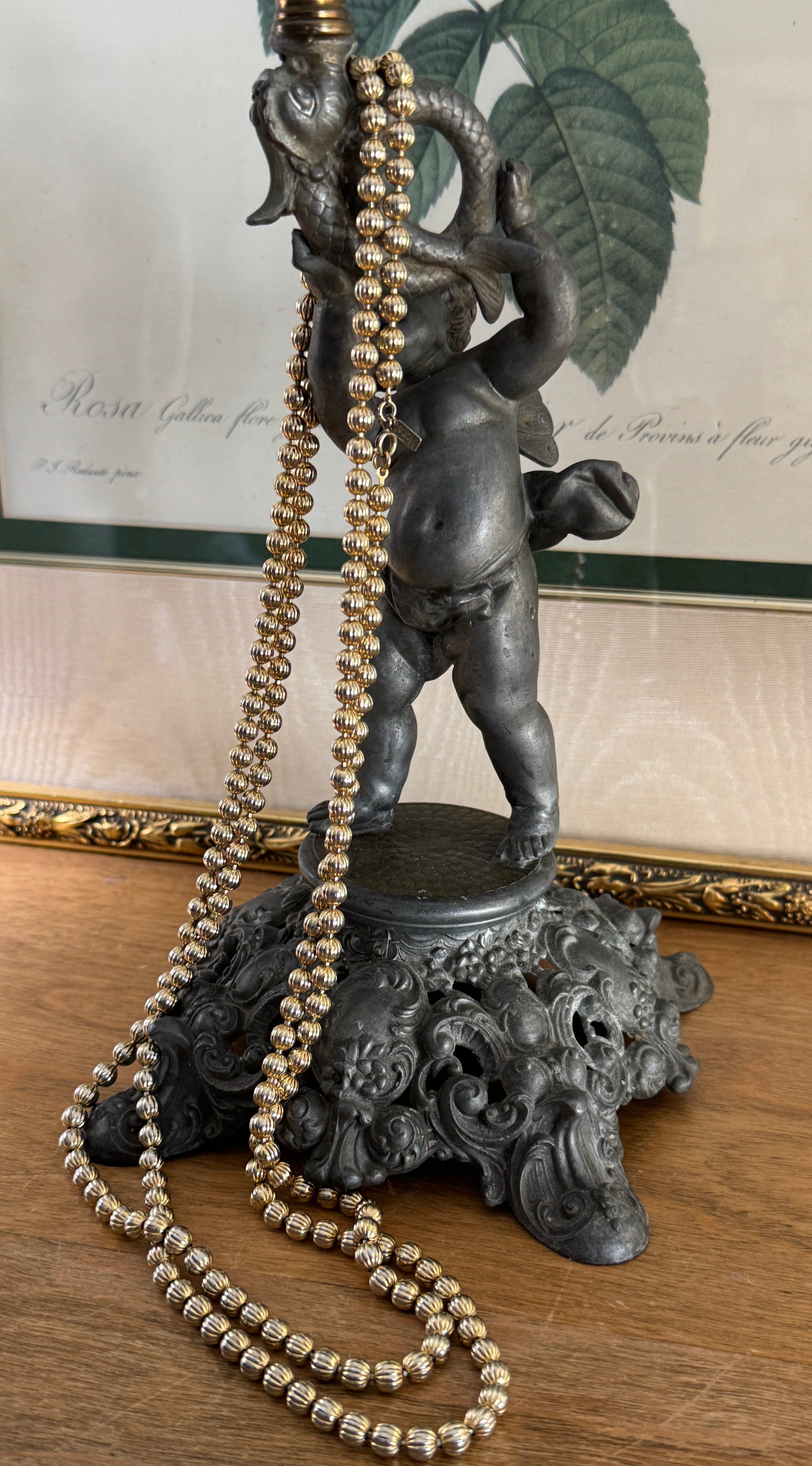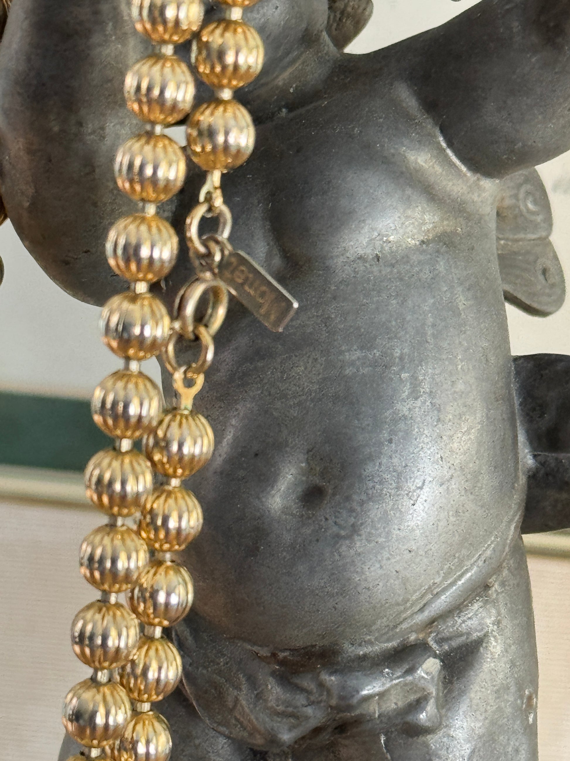 Vintage Monet Gold Tone Metal Bead Long Necklace